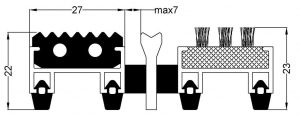 Состоит из резиновых вставок, щёток на алюминиевых профилях и скребков, которые стянуты тросом из нержавеющей стали в группу, образующую единую систему грязезащитной решётки. Скребок повышает эффективность очистки.