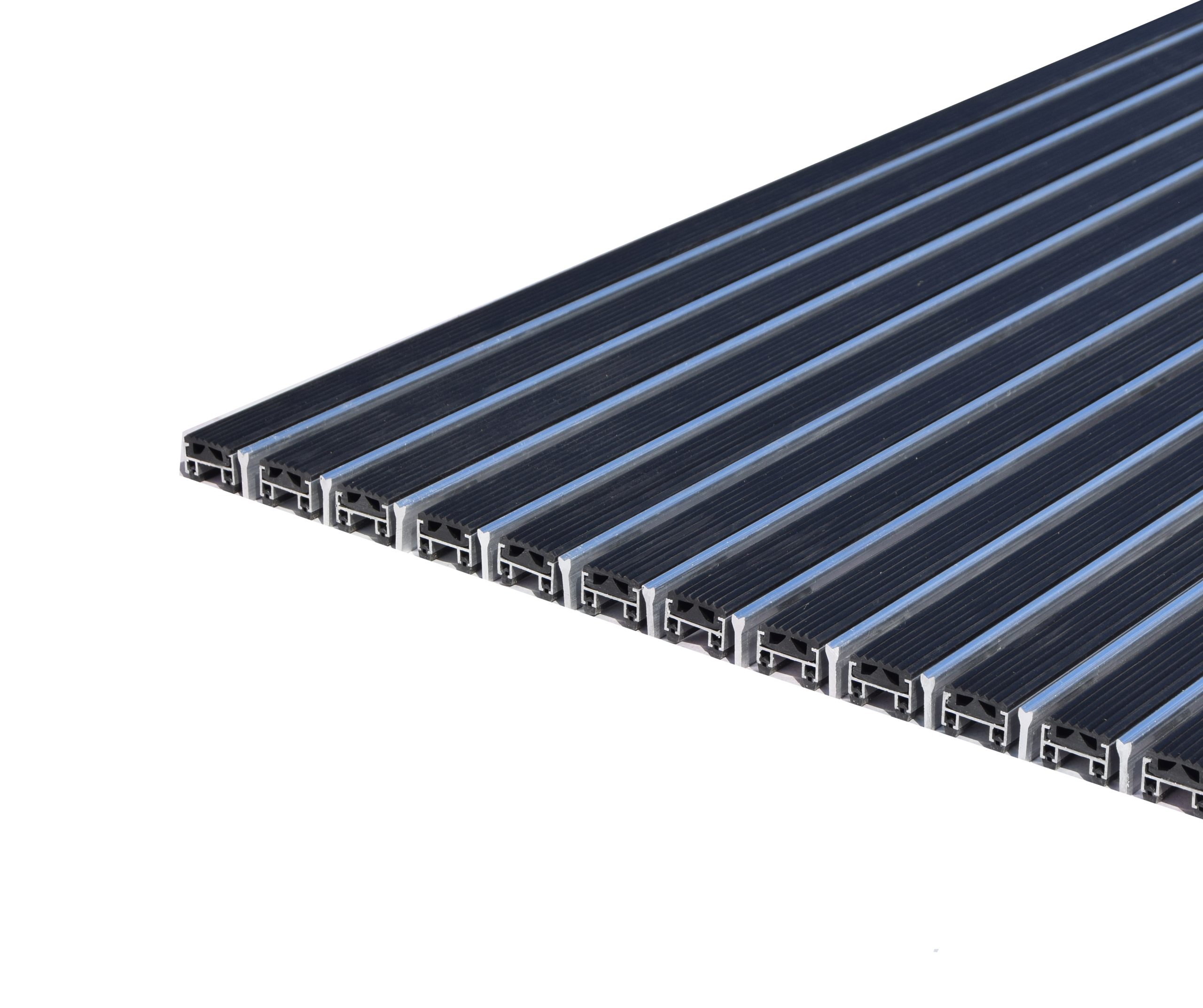 Состоит из резиновых вставок на алюминиевых профилях, которые стянуты тросом из нержавеющей стали в группу, образующую единую систему грязезащитной решётки. Скребок установленный между профилями усиливает эффективность очистки.