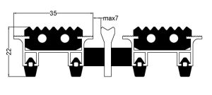 Состоит из резиновых вставок на алюминиевых профилях, которые стянуты тросом из нержавеющей стали в группу, образующую единую систему грязезащитной решётки. Скребок установленный между профилями усиливает эффективность очистки.