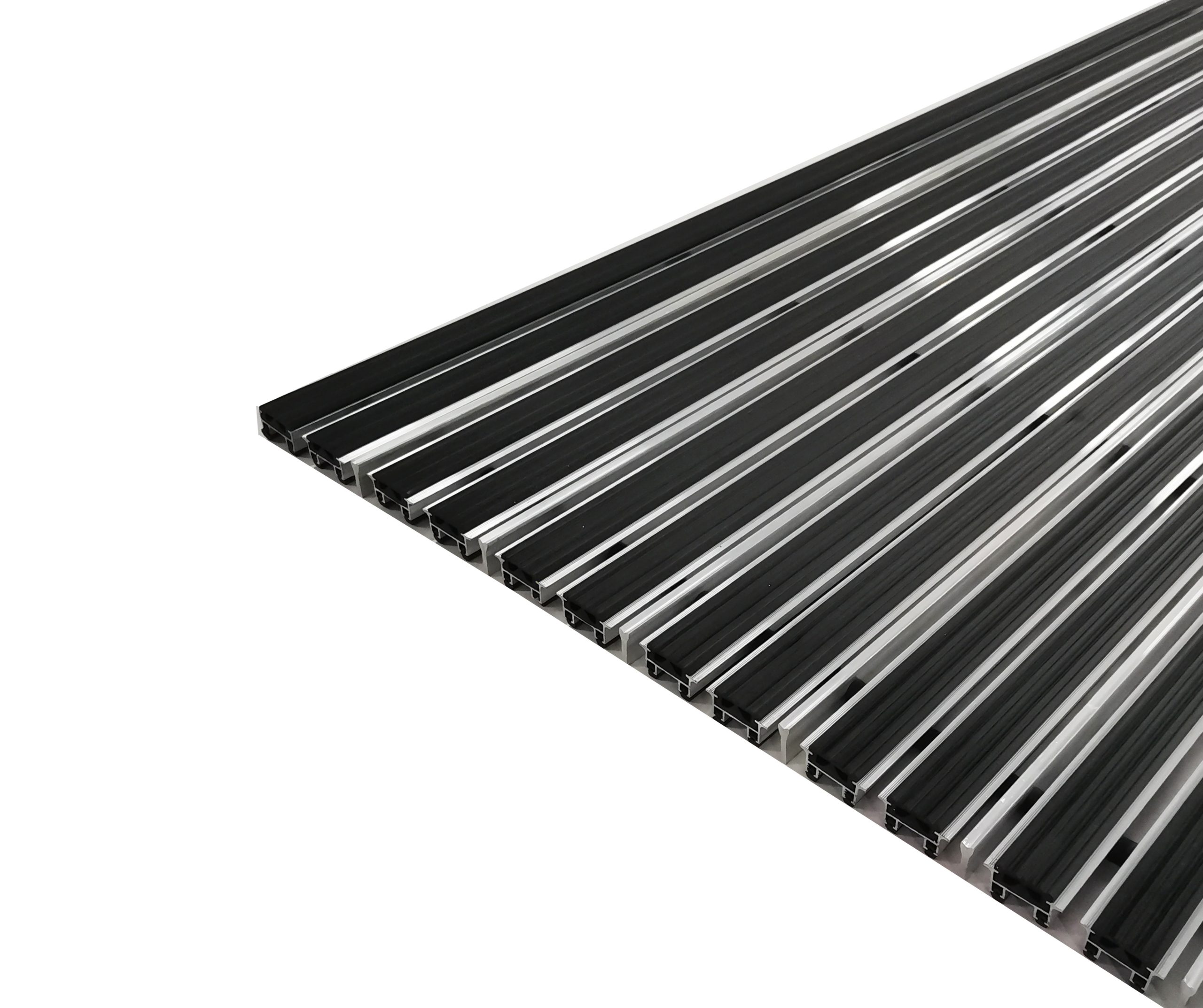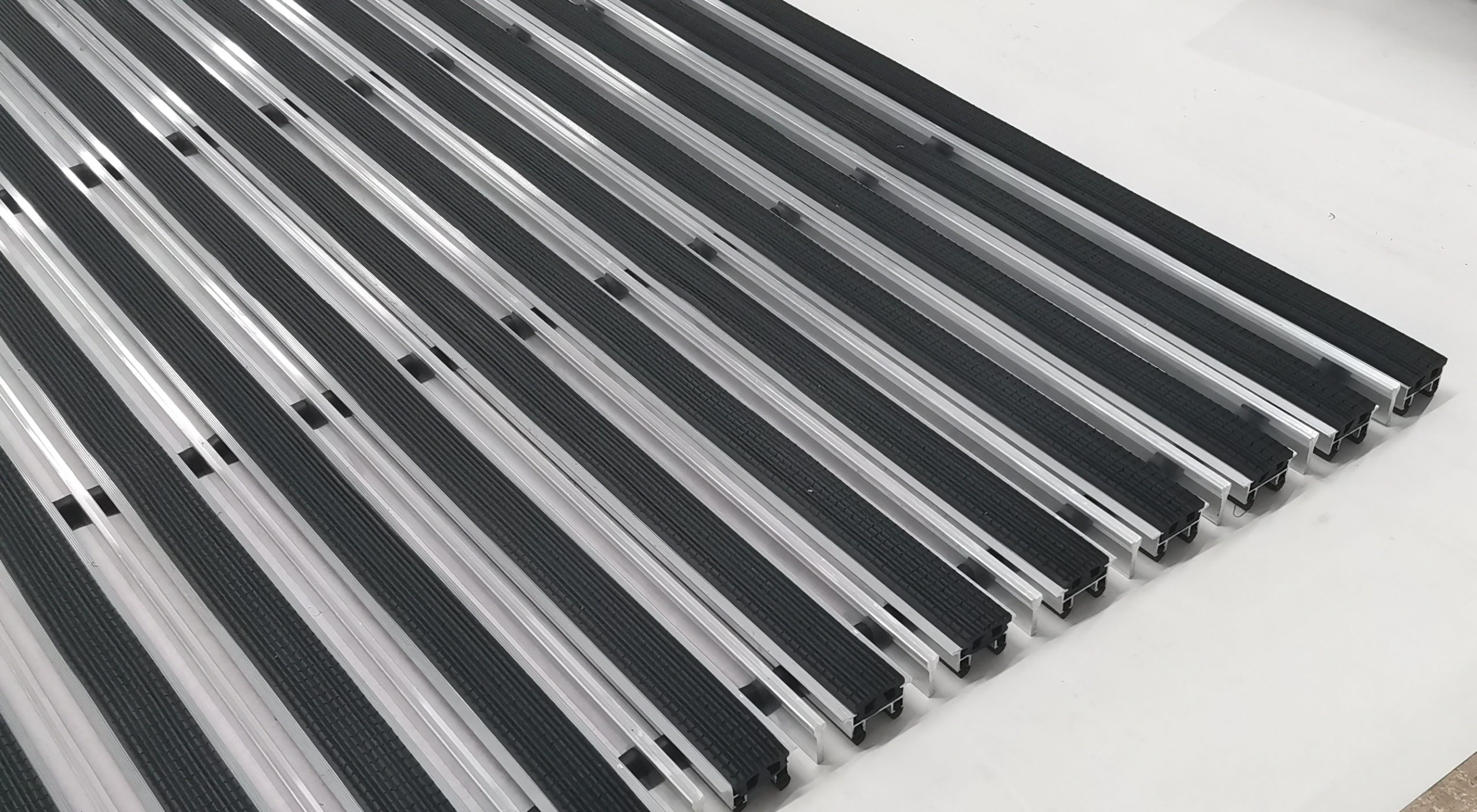 Состоит из резиновых вставок на алюминиевых профилях, которые стянуты тросом из нержавеющей стали в группу, образующую единую систему грязезащитной решётки. Скребок установленный между профилями усиливает эффективность очистки.