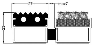 Состоит из резиновых и ворсовых вставок на алюминиевых профилях, которые стянуты тросом из нержавеющей стали в группу, образующую единую систему грязезащитной решётки.